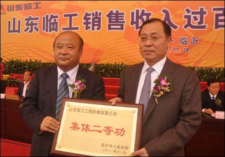 November 18th, a grand celebration was held in SDLG Industrial Park to celebrate the sales revenue of Lingong breaking through 10bln yuan. The related leaders including Wang Zhizhong, Chairman and CEO of SDLG, Ellis, Senior Consultant of Volvo Group, Benoit Rimaz, President of Volvo Construction Equipment (China), Yu Mengsheng, Executive President of SDLG, Wen Degang, General Manger of SDLG, Zhang Shaojun, Secretary of Linyi Municipal Committee, Zhang Wufeng, Mayor of Linyi, the excellent dealer representatives from home and abroad, and the staffs, totally more than 1000 people, attended the celebration. The activity is an important milestone of Lingong’s strategy of “Five-year Plan, To Be Achieved in Three Years”, and has a significant meaning of building on the past and preparing for the future in Lingong’s development history.