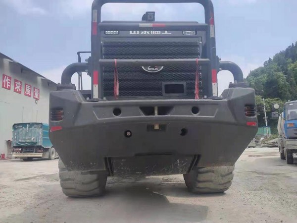 为了防止后部碰撞,这台L975F还加装了后部防撞设施。同时标配备倒车影像设备及球面后视镜,车辆后部工况一览无余,安全可靠、“后顾无忧”。针对侧卸工况,动臂板采用加厚设计,抗重负荷更高。