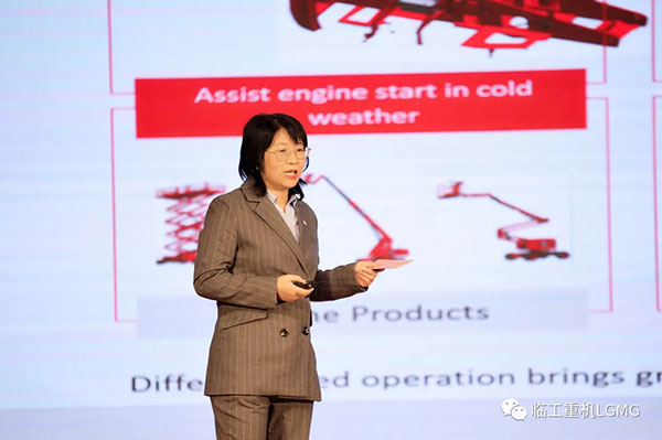 long8-龙八(国际)唯一官方网站重机海外高机应用研究所所长王玉玲讲解2021年LGMG海外新产品规划及布局